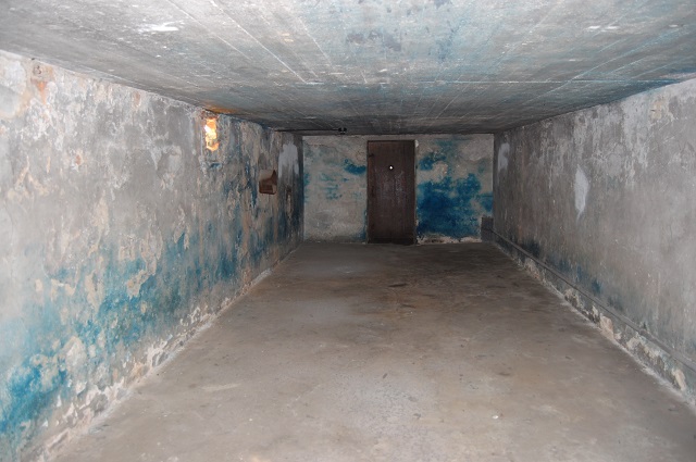 ছবি : প্রধান গ্যাস চেম্বার, বাম দিকের নলগুলো দিয়ে প্রবেশ করানো হতো মারনঘাতি গ্যাস