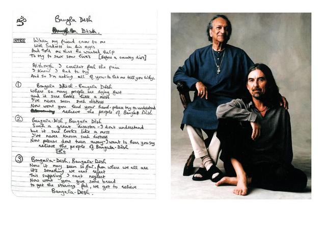 একাত্তরের জুনে হলিউডে "রাগা" এলবামের কাজ চলছিল। একদিন স্টুডিওতে জর্জ হ্যারিসনকে রবিশঙ্কর মুখ অন্ধকার করে বলছিলেন "আমি একটা কনসার্ট করতে চাই। তুমি আমাকে সাহায্য করবে? আমি ২৫ হাজার ডলার তুলতে চাই। বাংলাদেশে না খেয়ে মানুষ মরছে। ওদের জন্য। তুমি যদি আমার এই প্রোগ্রামের প্রচারণার কাজটা করতে পারবে... পিটার সেলার্সকে যদি একটু বলে দেখবে...কিছু একটা যদি করতে পার...।" তিনি জর্জকে সংবাদপত্র আর বিভিন্ন ম্যাগাজিনের কাটিং দেখাতে লাগলেন। যুদ্ধ আর শরনার্থী জীবনের নির্মম রিপোর্টগুলো পড়ে জর্জ হ্যারিসনের মনে হল "আই শ্যুড হেল্প হিম ডু ইট"। দ্যা বিটলসের দর্শন ছিল "যদি কিছু করার পরিকল্পনা কর, ছোট না, বিশাল কিছু কর"। নিউইয়র্কের ম্যাডিসন স্কয়ার গার্ডেন ১ আগস্টের "কনসার্ট ফর বাংলাদেশের" জন্য ভাড়া নেয়া হল। জুন থেকে আগস্ট-- জর্জ হ্যারিসন এ তিন মাস কনসার্টের জন্য কাজ করে গেছেন। তাঁর লেখা "বাংলাদেশ" গানটার কথা ধরা যাক। জর্জের মনে হল গানটায় কিছু একটা বাদ পড়েছে। "এই কনসার্টের পেছনের কথা তো বাদ পরে গেছে!" গানটার শুরুতে যোগ করা হল "মাই ফ্রেন্ড কেইম টু মি/উইথ স্যাডনেস ইন হিজ আইজ...।"