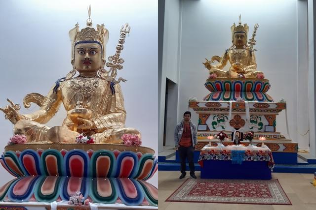 পরদিন সকালে উঠে ডিম ভাজি-পাউরুটির স্যান্ডউইচ আর আগের দিনের বেঁচে যাওয়া খিচুড়ি দিয়ে প্রাতরাশ শেষ করে তাড়াহুড়া করেই বেরোতে হল, কারন সকাল ১০ টার মাঝে চেক আউট করতে হবে। পরদিনের প্রথম গন্তব্য ছিল “দি গ্রেট স্টুপা অফ ইউনিভার্সাল কম্প্যাশান” বৌদ্ধ মঠ, ড্রাইভ করে গেলে আমাদের আস্তানা থেকে ২৫ মিনিটের মত দুরত্তে ছিল। মঠের প্রবেশদ্বারে পৌছনোর আগেই ল্যাভেন্ডার, রোজমেরি, নানা ধরনের ফল আর চেরি ফুলের বাগান আর বাগানের ফাঁকে ফাঁকে ছোট বড় অনেক মূর্তি চোখে পড়ল। এই মঠটা মুলত চায়নার ৬০০ বছরের পুরোনো গ্রেট স্টুপা আফ গিয়ান্টসে এর আদলে এখনও নির্মাণাধীন। পুরোটা নির্মাণ করতে আরও প্রায় ৪০ বছর সময় লাগবে, প্রায় ২ কোটি ডলারের প্রোজেক্ট। এসবই জানতে পারলাম মঠের ভেতরের স্বেচ্ছাসেবকের কাছ থেকে, সে আমাদের গাইড হয়ে মন্দিরটা ঘুরিয়ে দেখালো আর মূর্তিগুলো কার, কি দিয়ে তৈরি আর কোথা থেকে মূর্তি বানানোর উপাদান সংগ্রহ করা হয়েছে তা বর্ণনা করল। বুদ্ধের মূর্তির পাশাপাশি বুদ্ধের পুরুষ অবতার (পাদ্মাসাম্ভাবা) আর নারী অবতারের (তারা) মূর্তিও রয়েছে। তিব্বতিয়ান বৌদ্ধমতে বুদ্ধের নারী অবতারের নাম তারা, যিনি স্বাধীনতা, সফলতা আর অর্জনের দেবী। এই বৌদ্ধমঠে বুদ্ধের নারী অবতারের ২ টি মূর্তি আছে “গ্রীন তারা আর হোয়াইট তারা”। গ্রীন তারা মূর্তিটা কানাডিয়ান জেড পাথরের তৈরি, একই পাথরের একটা লকেট আমাদের গাইডের গলায় ঝোলানো। ভিয়েতনাম থেকে আনা সাদা মার্বেলের তৈরি আরেকটা বিশাল বৌদ্ধ মূর্তি (২ টন ওজন) দেখলাম তার আবার বুকের নিচের অংশ পায়ের সাথে এখনও জোড়া লাগানো হয়নি। এছাড়া আছে তিব্বত থেকে সংগ্রহ করা তলোয়ার আর আর তিব্বতি দৈত্যাকার বাঁশি, আমাদের গাইড সে বাঁশি আবার বাজিয়ে দেখালো, গাইডের যেমন হালকা পাতলা চেহারা, কিভাবে এই বাঁশি বাজানোর দম পেল কে জানে! মঠ থেকে বের হয়ে মঠের বাগানে কিছুক্ষন ফটোসেশন চলল, তারপর পরবর্তী গন্ত্যব্যের দিকে রওনা হলাম। একসাথে ১২.৫ জন মানুষ দ্রুত এক জায়গা দেখা শেষ করে আরেক জায়গায় চলে যাওয়া খুব একটা সহজ না, কিন্তু তারপরেও আমরা মনে হয় দ্রুতই সেটা করতে পেরেছিলাম।