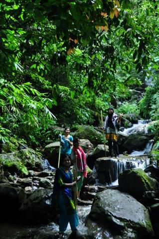 মুগ্ধতা কাটিয়ে রওনা দিলাম জাদিপাইয়ের পথে। জাদিপাই যেতে বেশ খাড়াভাবে নিচে নামতে হয়। পাসিং পাড়া, জাদিপাই পাড়া পেরিয়ে যাওয়ার পর থেকেই ঝর্ণার শব্দ শুনতে পাচ্ছিলাম। কি যে ভালো লাগছিল সেই শব্দ! আরো বেশ খানিকক্ষণ পরেও ঝর্ণার দেখা না পাওয়ায় বুঝলাম সেটা অন্য কোন ঝর্ণা। এর মাঝে একটা ঝিরিতে পা ভিজিয়ে হাতে-পায়ে মেখে নিলাম গুল। জোঁক থেকে সুরক্ষা পেতে। এটা বেশ কাজে দিয়েছিল। এরপরে আর কোন বড়সড় জোঁকের কবলে পড়তে হয়নি। প্রায় দেড় ঘন্টার মত হেঁটে অবশেষে আমরা দাঁড়ালাম প্রায় ৮০ ডিগ্রী খাড়া ঢালের মুখে। প্রথম দেখাতে একটা জিনিসই মনে হল, এদিক দিকে নামাও কি সম্ভব? সম্ভব অবশ্যই। এতদূর এসে থেমে যাওয়ারতো কোন সুযোগ নেই। শুরু করে দিলাম নামা। জেরিন-রুহানা-হৃদি বেশ সাহস নিয়ে আগে আগে পথ দেখিয়ে নেমে যাচ্ছিলো। এরপরে আমি, সুচেতা আর মালিহা। আমার স্যান্ডেল এখানে এসেই গেল ছিঁড়ে। যার কারণে পায়ের ব্যালান্স ঠিক রাখতে বেশ হিমশিম খেতে হচ্ছিল। কোনরকমে গাছের গুঁড়ি ধরে, কখনো বা বসে বসে শরীরের ব্যালান্স রক্ষা করে আমরা নামতে থাকলাম। এভাবেই প্রায় ১৫-২০ মিনিট নামার পরে দেখা মিললো বর্ষার অপরূপ জাদিপাইয়ের।