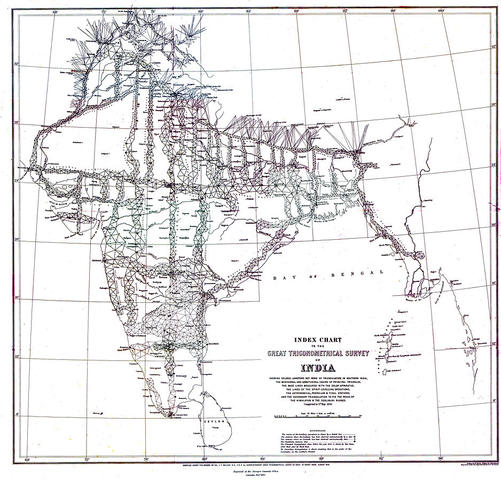 গ্রেট ট্রিগোনোমেট্রিক্যাল সার্ভে চলাকালে ১৮৭০ সালে করা ভারতবর্ষের একটি মানচিত্র